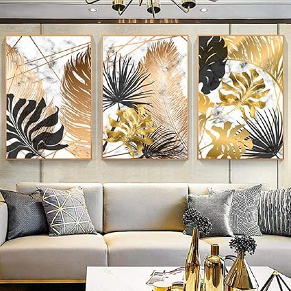 WADPJ Nordic Golden Leaves Canvas Schilderij Zwart Goud Luxyry Leaf Muurkunst Poster Afbeeldingen Canvas voor de woonkamer wooncultuur 50x70cmx3 stuks geen lijst: Amazon.nl